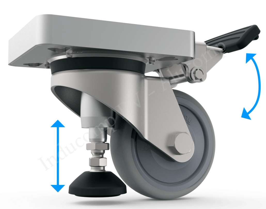 Nieuw in het programma is het zwenkwiel met een lift functie. Het is permanent gemonteerd en vergemakkelijkt de frequente verplaatsing van machines en apparaten op industriële vloeren. Dit zonder dat extra gereedschap of montage nodig is. Tijdens gebruik worden machines of apparaten veilig en stabiel ondersteund door de stelvoet, in plaats van te staan op een geblokkeerd zwenkwiel. De perfecte oplossing voor alle toepassingen waar frequente verplaatsingen vereist zijn terwijl een veilige ondersteuning nodig is. Voor meer informatie kunt u contact opnemen met +31(0)314625016 |